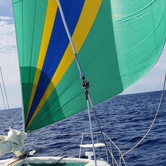We have been blessed with a several of those days - one day (I can't remember where we were) we had light winds behind us so, we put out geniker up for the first time. It took us a couple of tries to hoist the generous colorful nylon sail. But once we got it up, it was truly glorious.